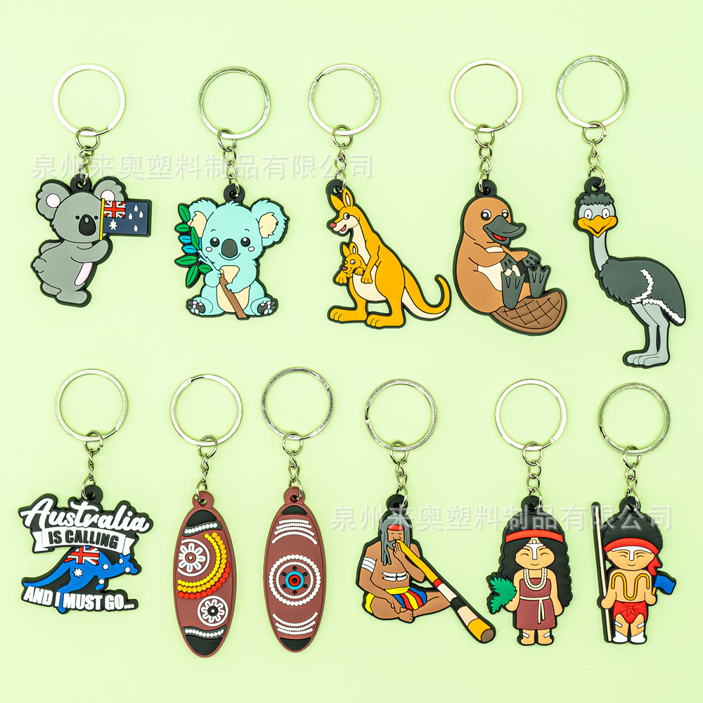 国境を越えた新しい漫画オーストラリアスタイルのキーリングペンダントホリデーギフトロゴPVCキーチェーンペンダントを印刷できます