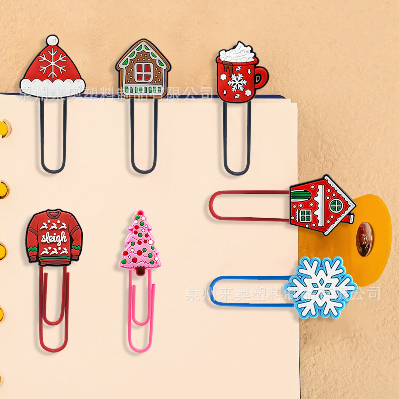 跨境新款卡通圣诞创意书签现货学生课本笔记本回形针PVC彩色曲别