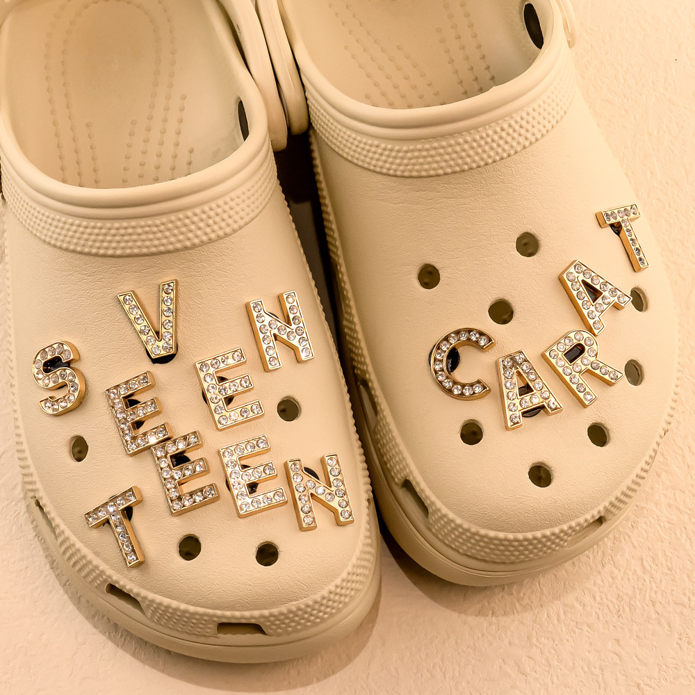 クロスボーダーゴールデンガーデンシューズラインストーンdiyアクセサリーホールシューズバックルスポットメタルレターホールシューズフラワーシューズアクセサリー