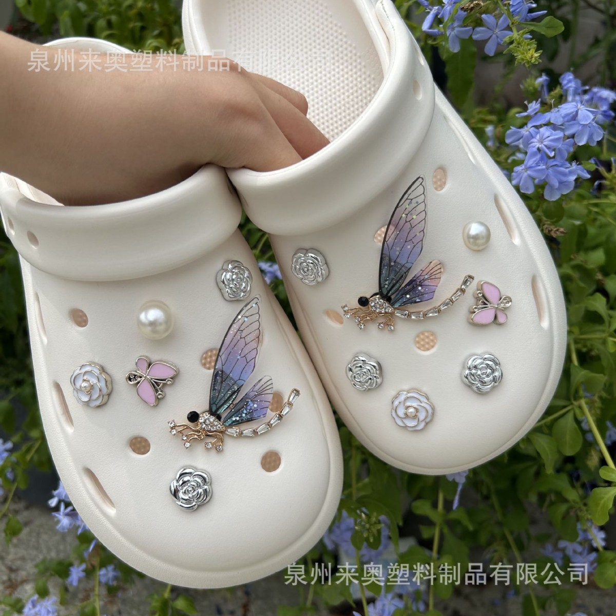 クロスボーダーアクリル下駄フラワーシューバックルスポット模造パールラインストーン下駄バッグブレスレット金属装飾靴アクセサリー