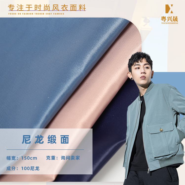 100% ナイロンサテン光沢ナイロン生地ファッションバッグ生地防水ダウンジャケット生地現物