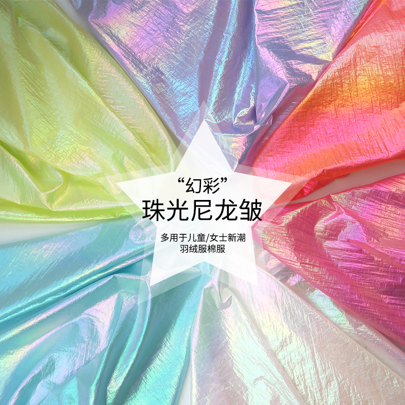 幻彩グラデーション300t春亜紡織幻彩珠光虹箔押し生地ペット服ダウンジャケット綿服生地