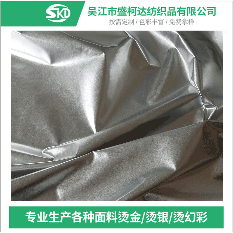 春亜纺銀色箔押し防水ダウンジャケット高級生地 全ポリエステル箔押しメタリック光沢生地加工