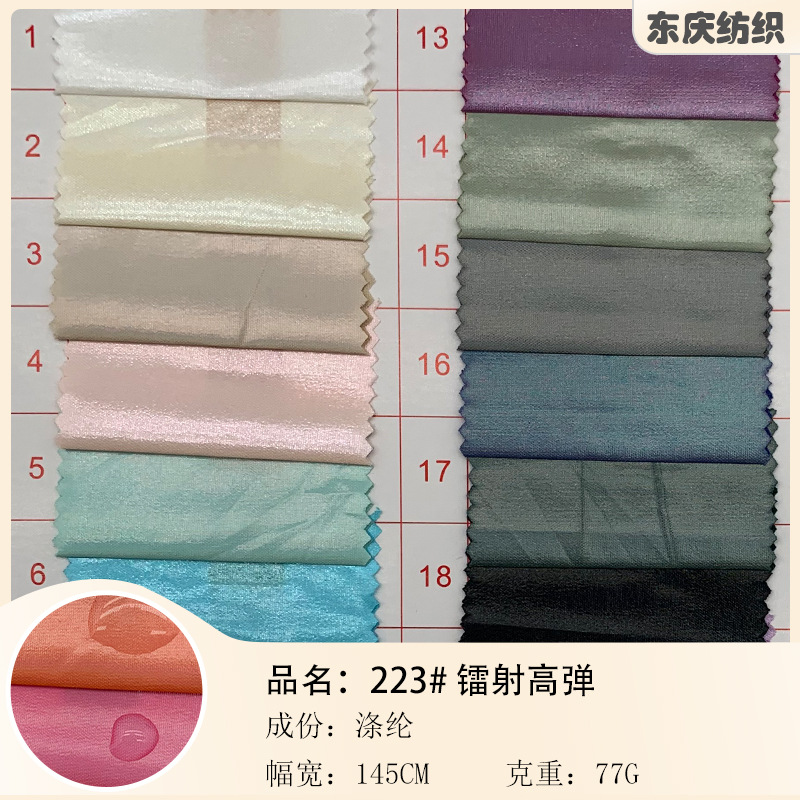 亮光面镭射高弹羽绒服布料 炫彩弹力舞台演出服时尚服装面料 现货