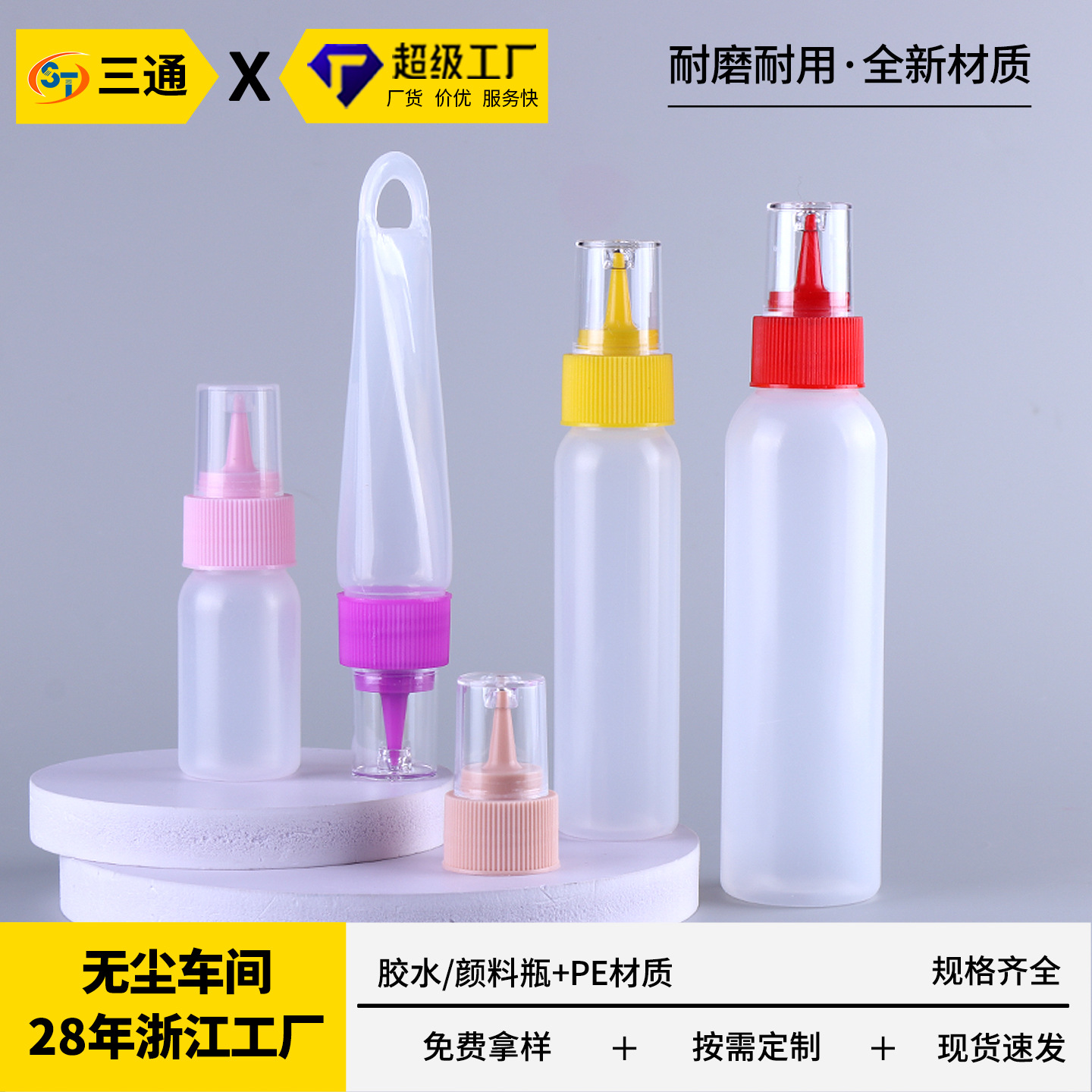 スポット卸売りpe透明プラスチック30mlペットボトル押し出しジャム押し出し顔料瓶の先のとがった押し出し瓶