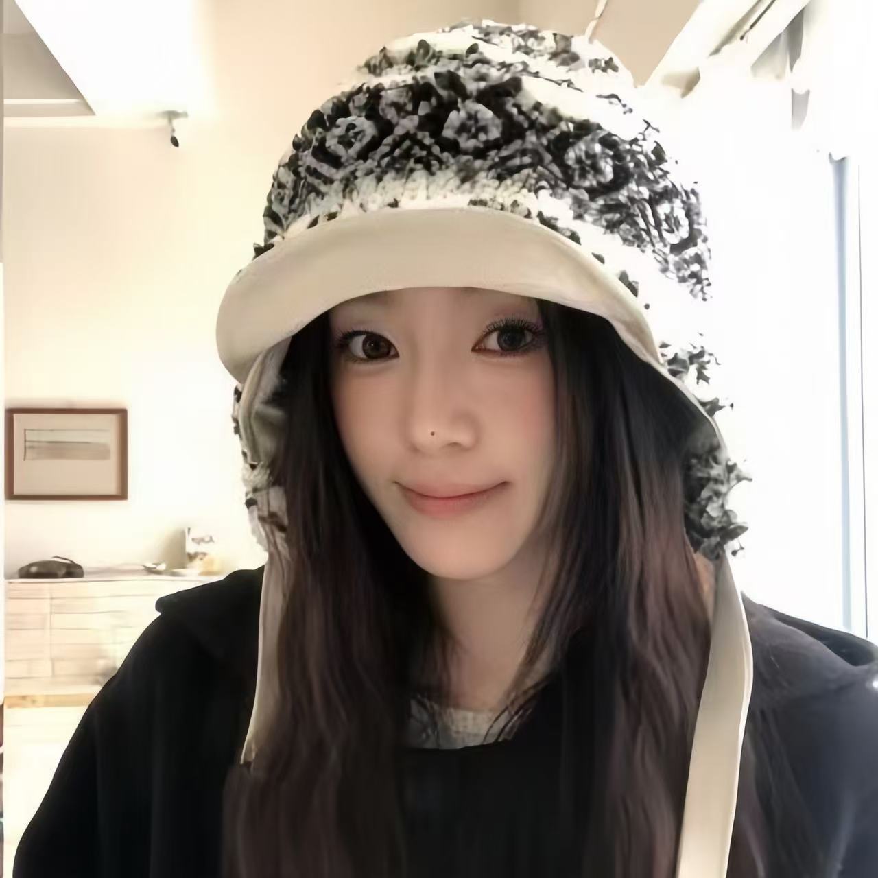 アルファベットの漁師の帽子の女性の春の夏の黒色は日本の大きい頭の周囲のバケツの帽子の韓国版の顔を見せます。