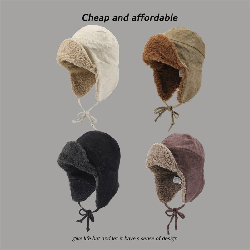 冬の耳保護帽のコーデュロイ保温雷鋒帽子ファッション厚手防寒騎乗防風飛行スキー帽
