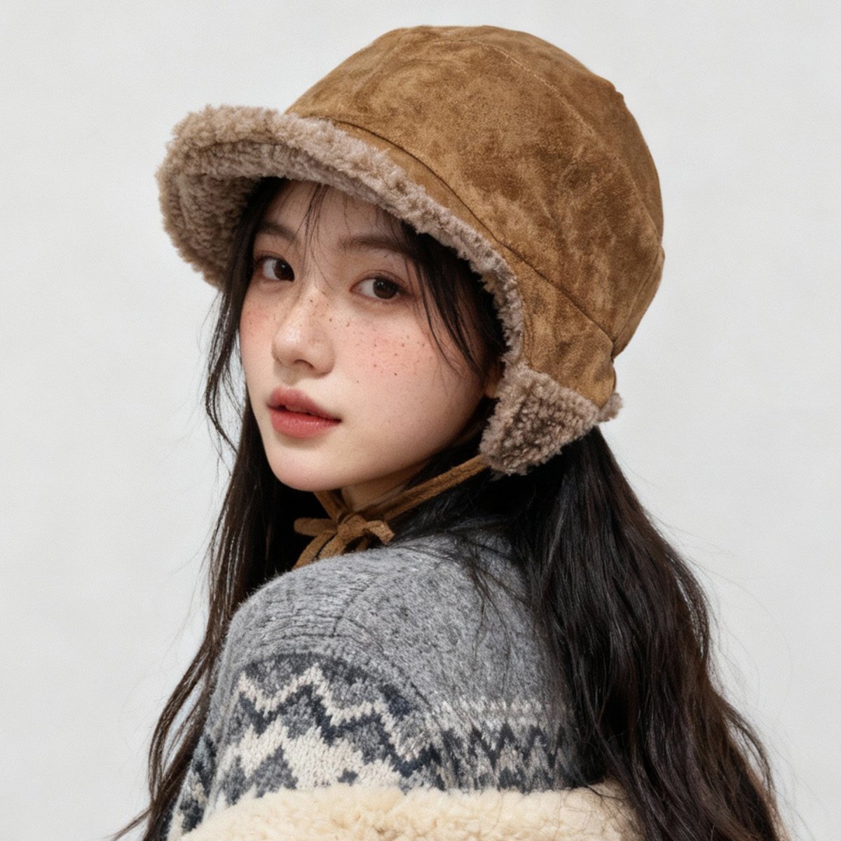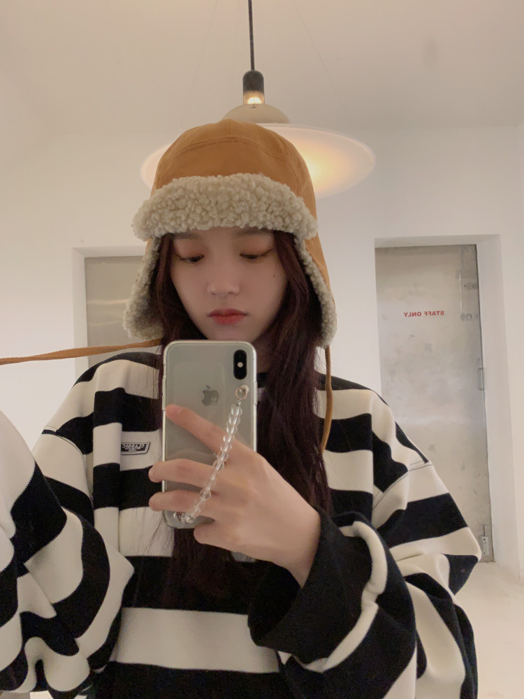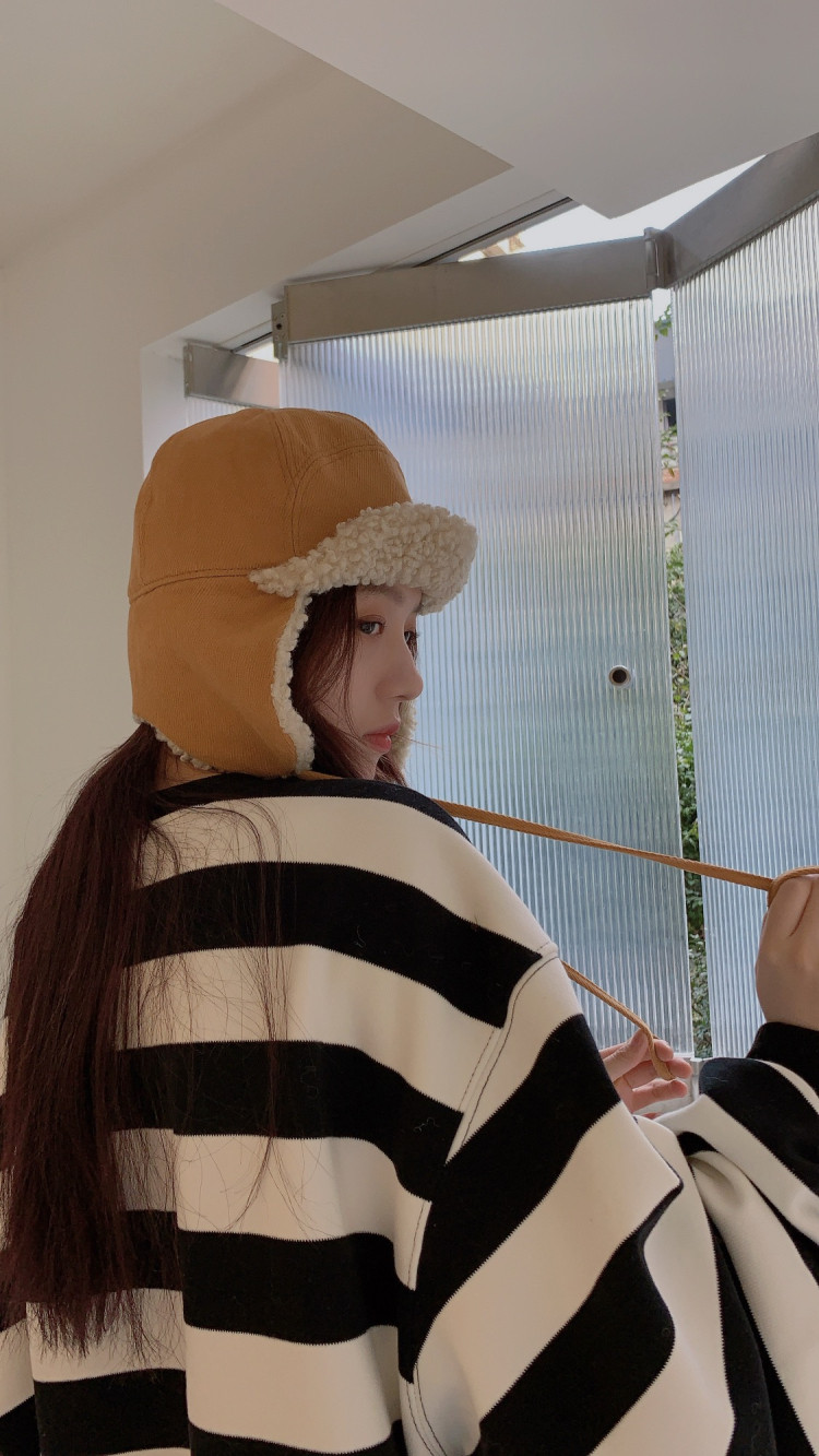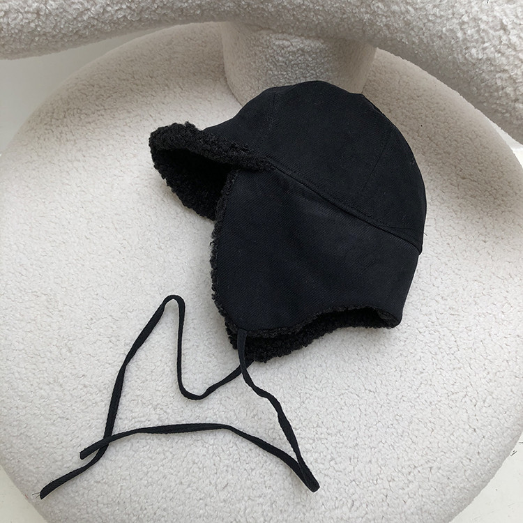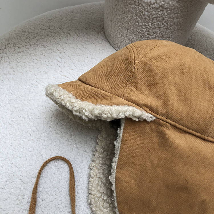 韩国麂皮绒飞行帽冬天加绒加厚羊羔毛保暖系带护耳帽防风雷锋帽子