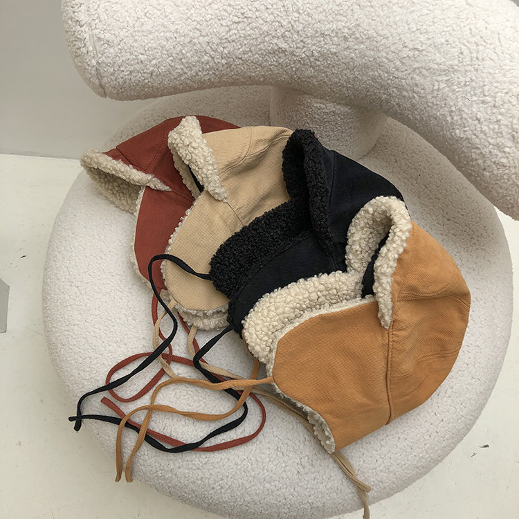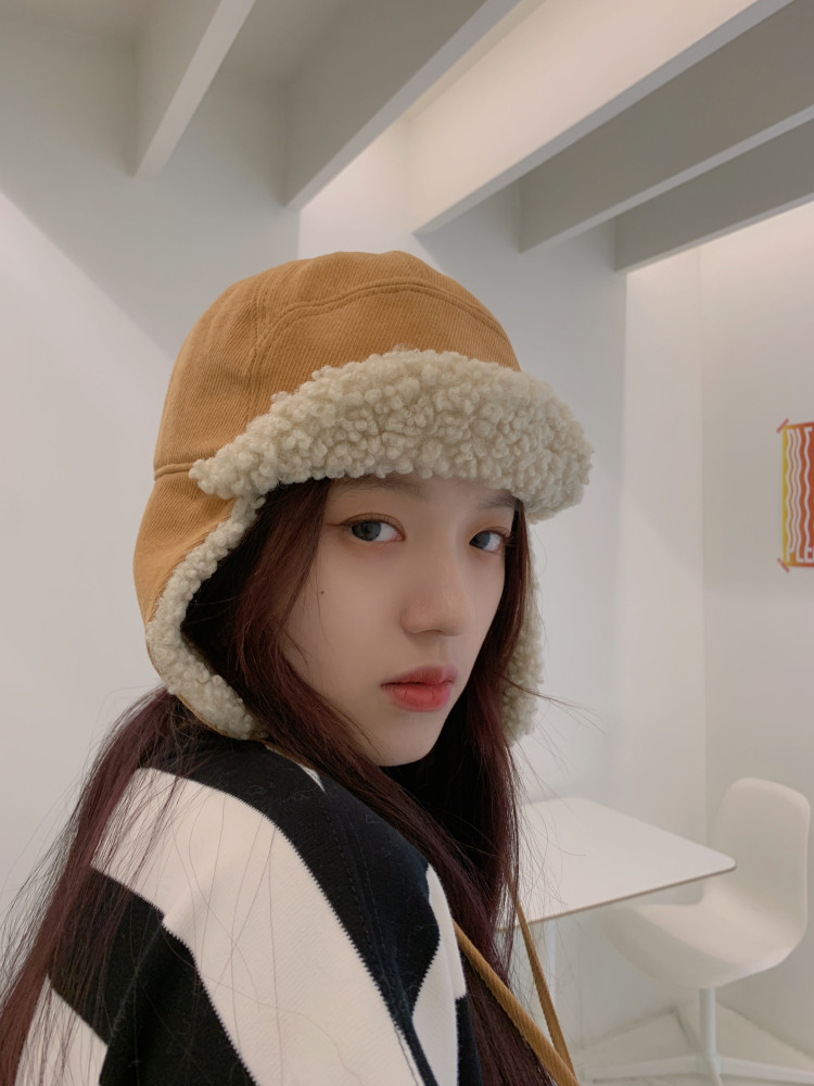 秋冬帽子ins羊小毛ベルベット耳保護帽子男女保温スキー屋外飛行スキー雷鋒帽
