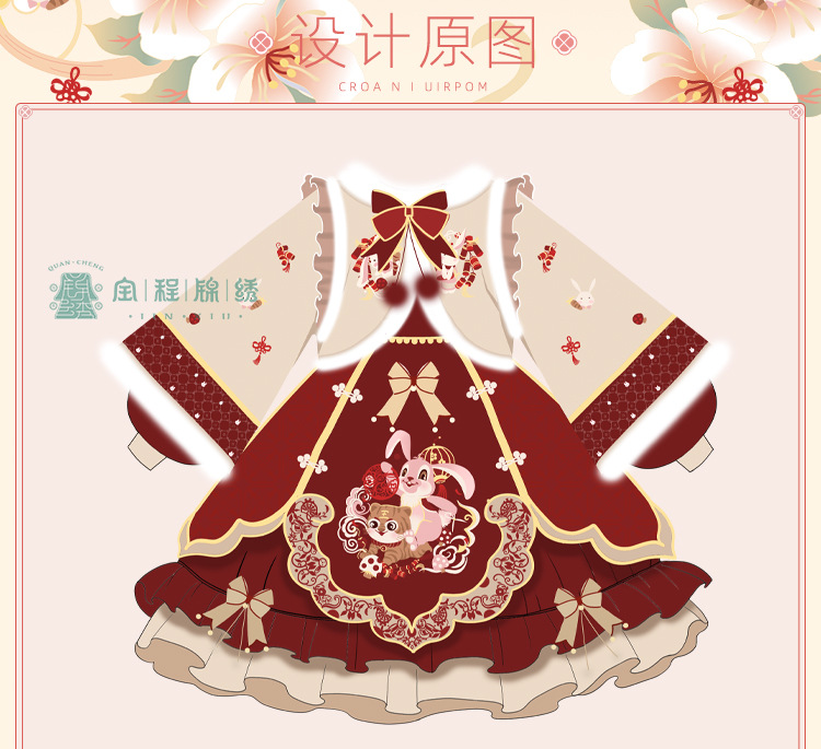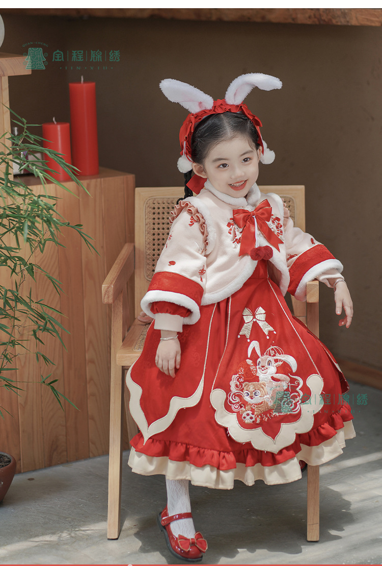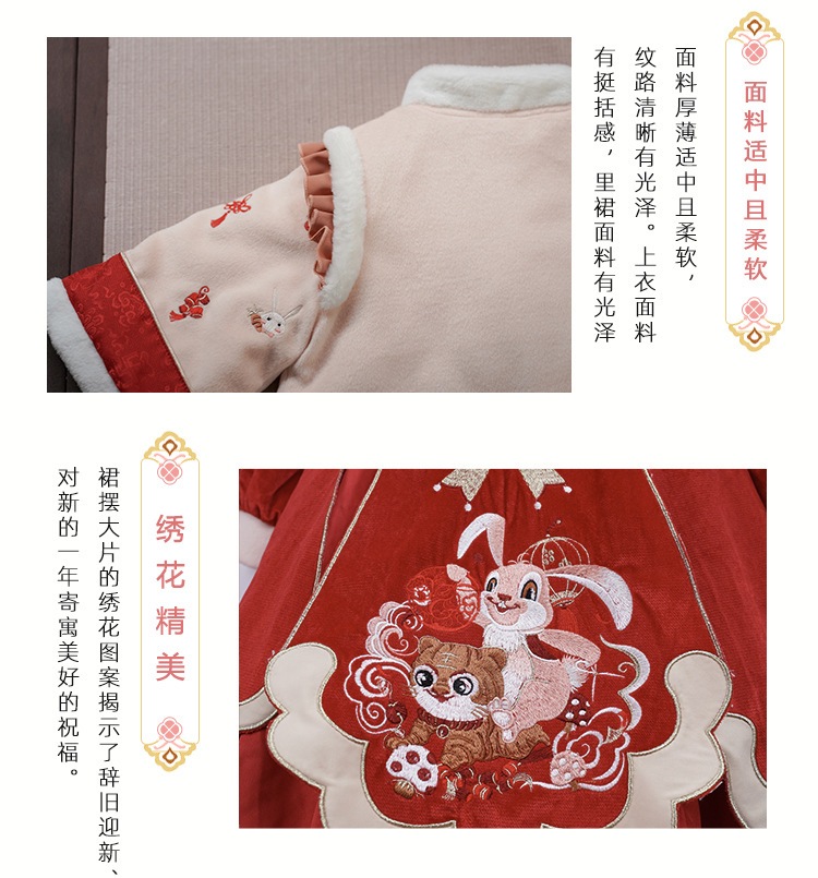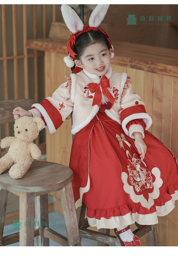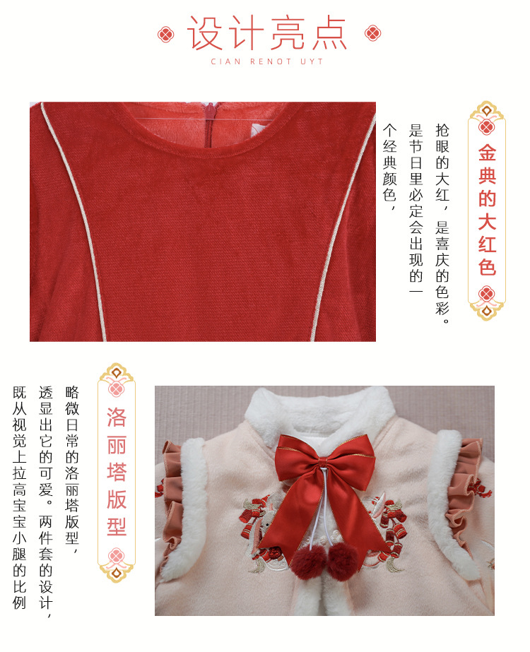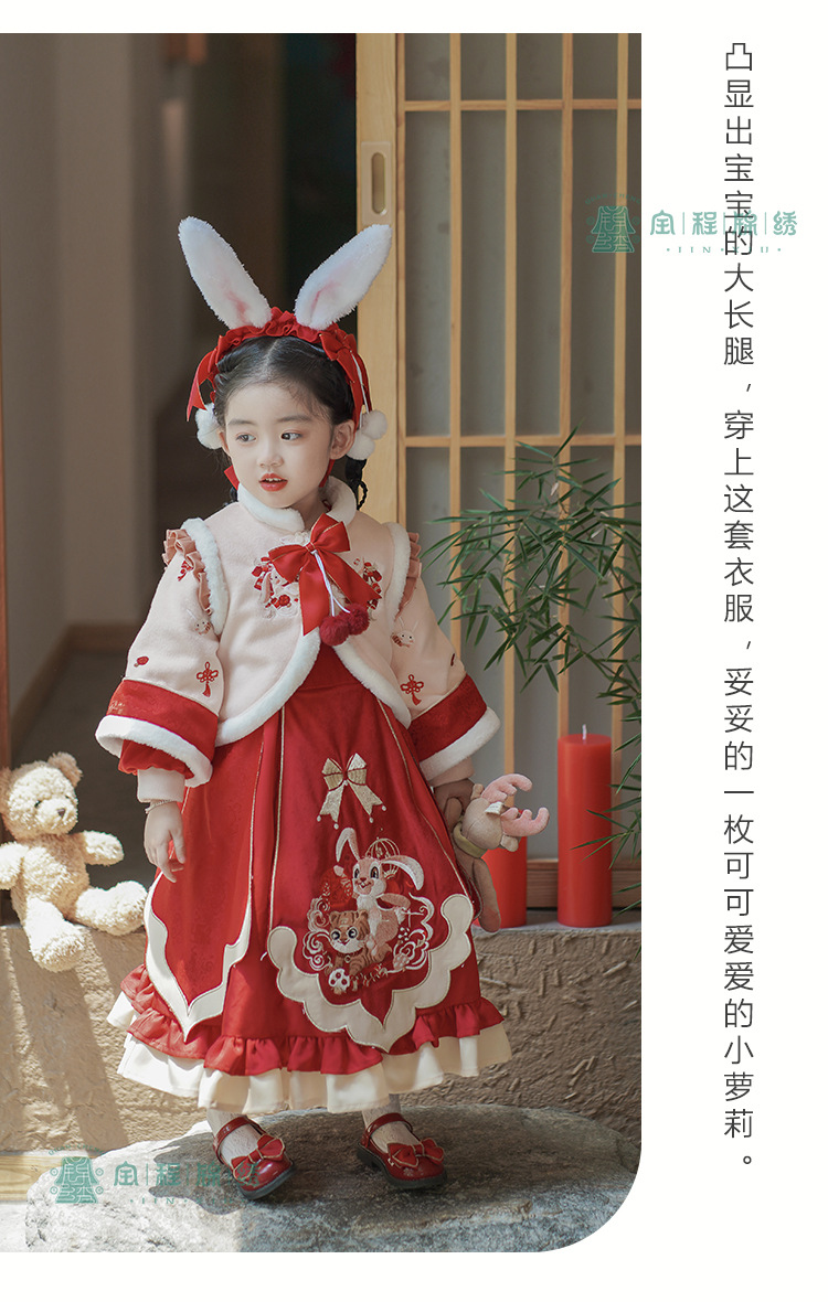 冬子供の漢服ロリータ女の子新年服赤いドレスマント女の子新年服ドロップシッピング