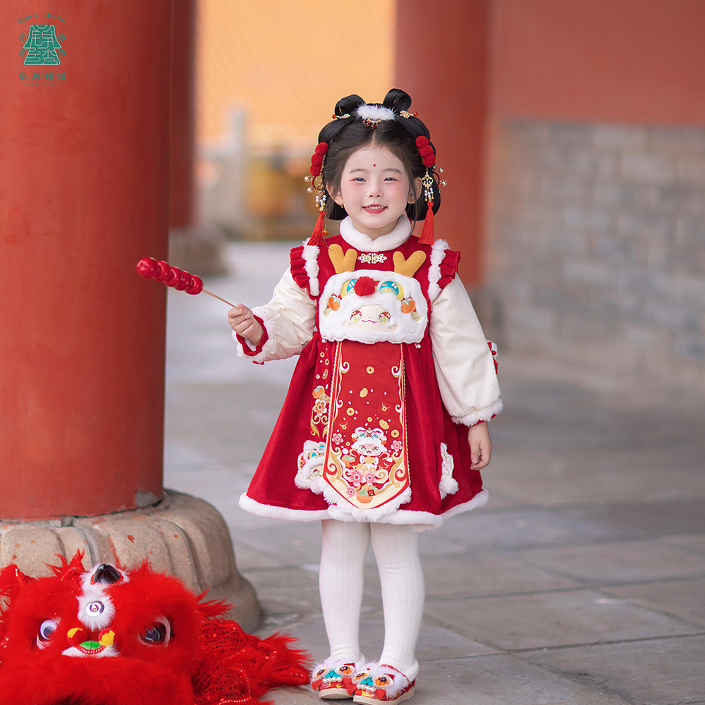 冬オリジナル子供漢服ドレススーツベスト女の子新年服中国風子供服新年服ドロップシッピング