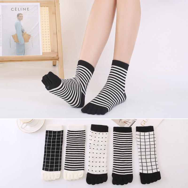 ファッションの指の靴下の子供のストライプの女性の靴下の格子insのファッションの靴下の1件の代理の四季のタイプの綿の靴下の5本の指の靴下