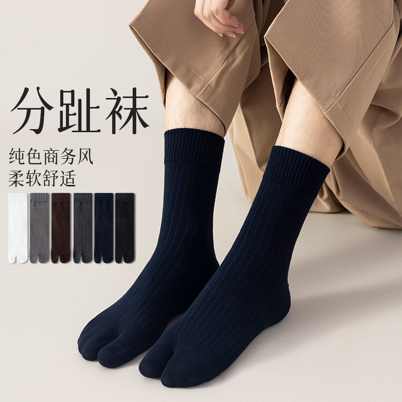 分趾袜子男士秋冬款中筒袜棉袜7A抗菌防臭高筒二趾袜春秋季长袜