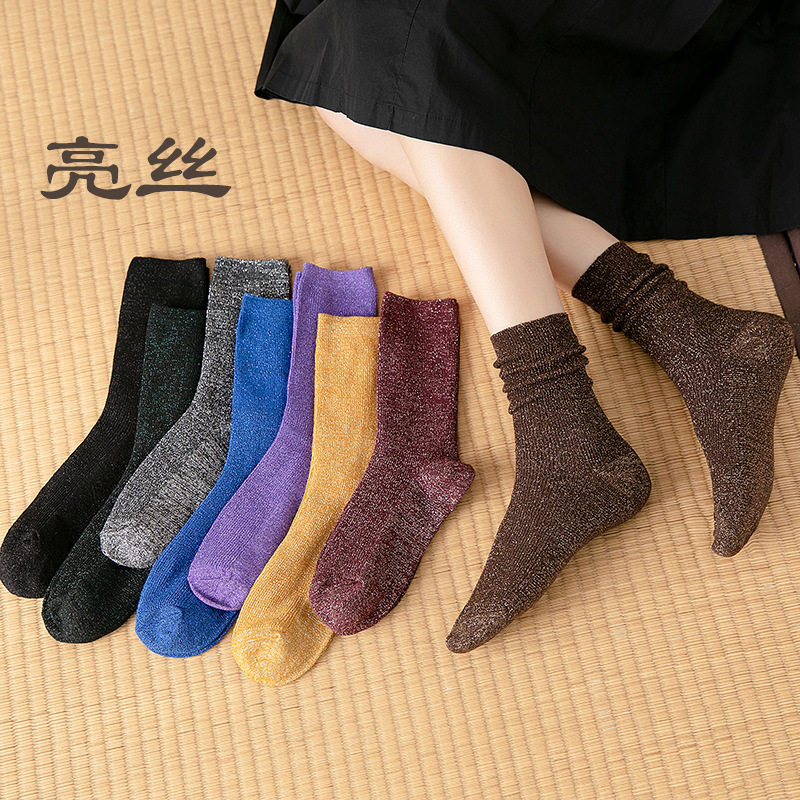 韓国の靴下の女性の中筒の靴下の秋冬の銀のネギの明るい糸は靴下の金銀の糸の真珠の光の女性のストッキングの潮流を積み重ねます。