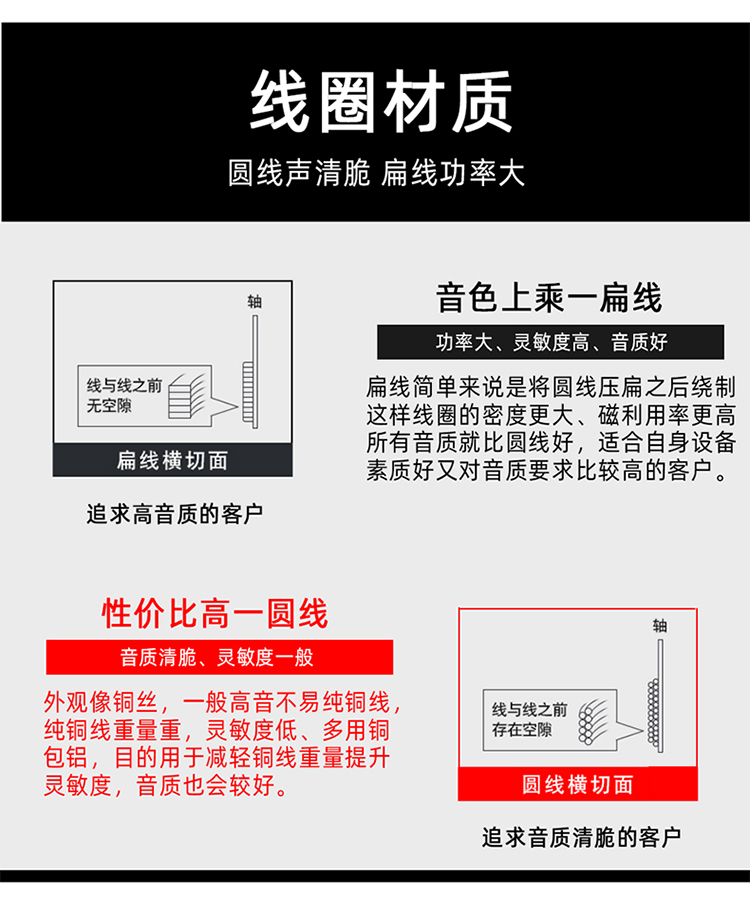 34芯44芯51芯72芯75芯高音音圈进口钛膜圆线扁线带柱喇叭维修配件