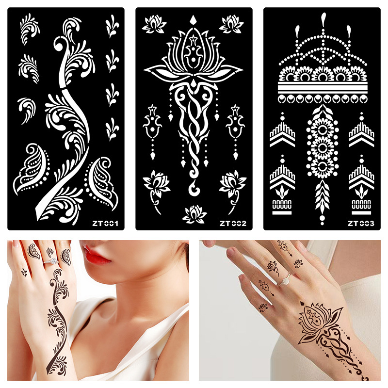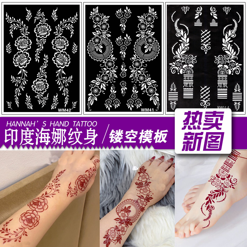 タトゥーステッカー、人体スプレーペイントテンプレート、塗装中空テンプレート、ヘナタトゥー、フレッシュハーブジュースシミュレーションステッカー