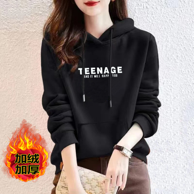 ベルベットのセーターと帽子の綿質の正肩運動がゆるいカジュアルなファッションプリント秋冬コートの多色女性ファッション上着