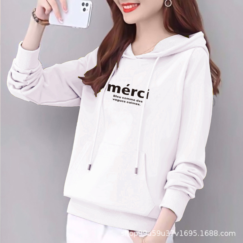 純綿の縁の帽子のパーカーの女性の春秋服のカジュアルなファッションのゆったりしている上着のアルファベットのプリントのスポーツウェアはやせているコートを見せます。