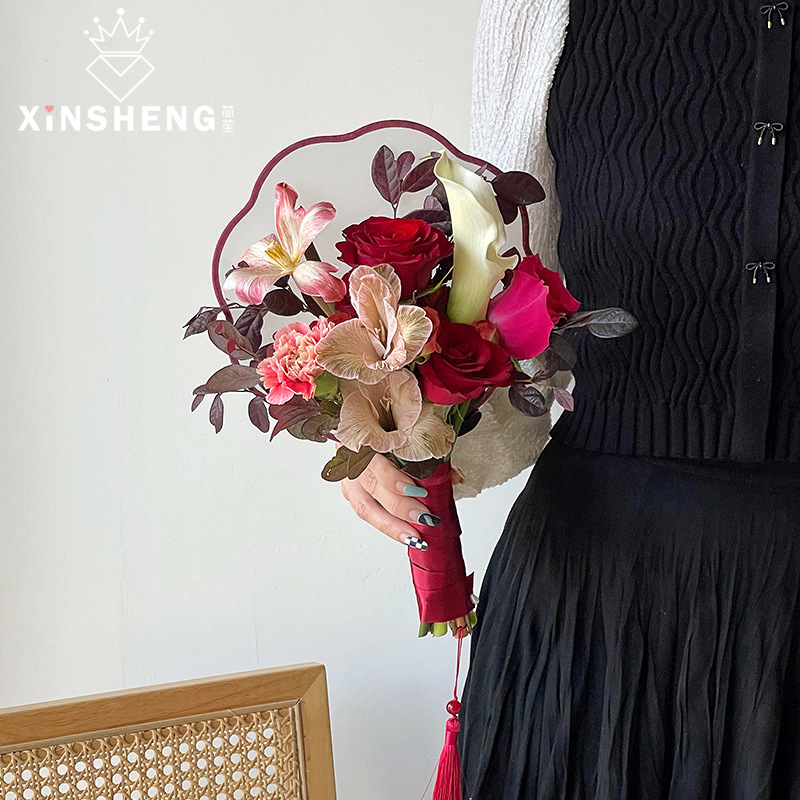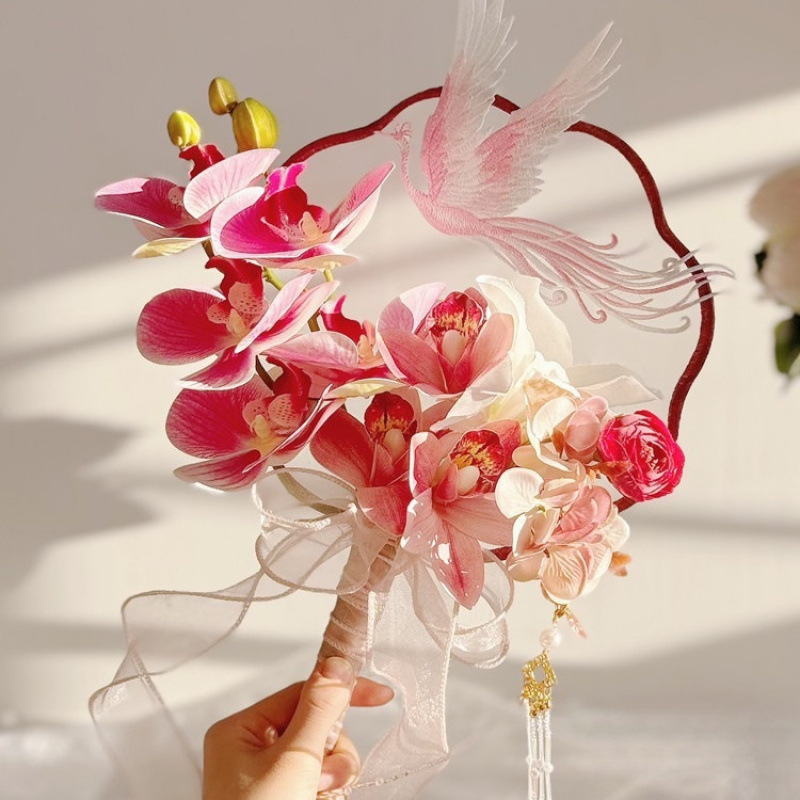 新中式手捧花新娘团扇子订婚领证秀禾晨袍户外旗袍仿真花拍照喜扇