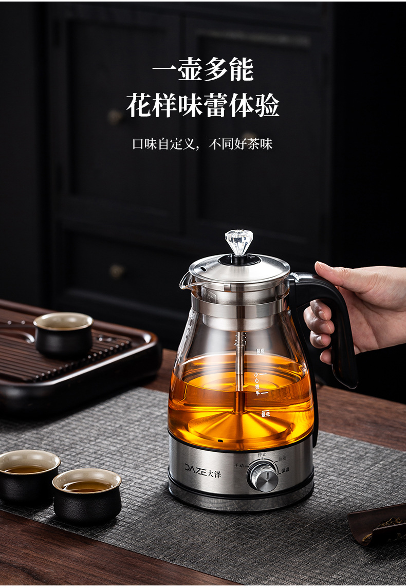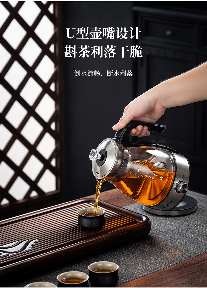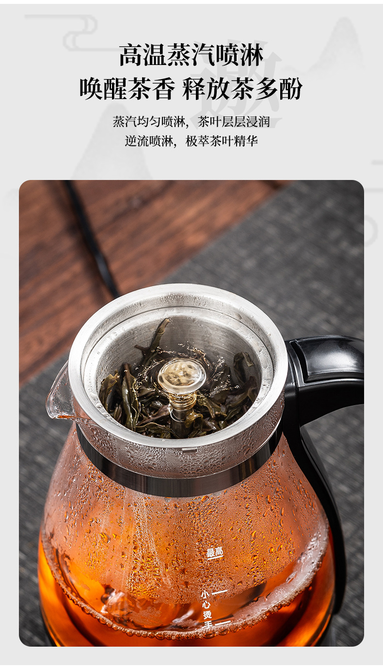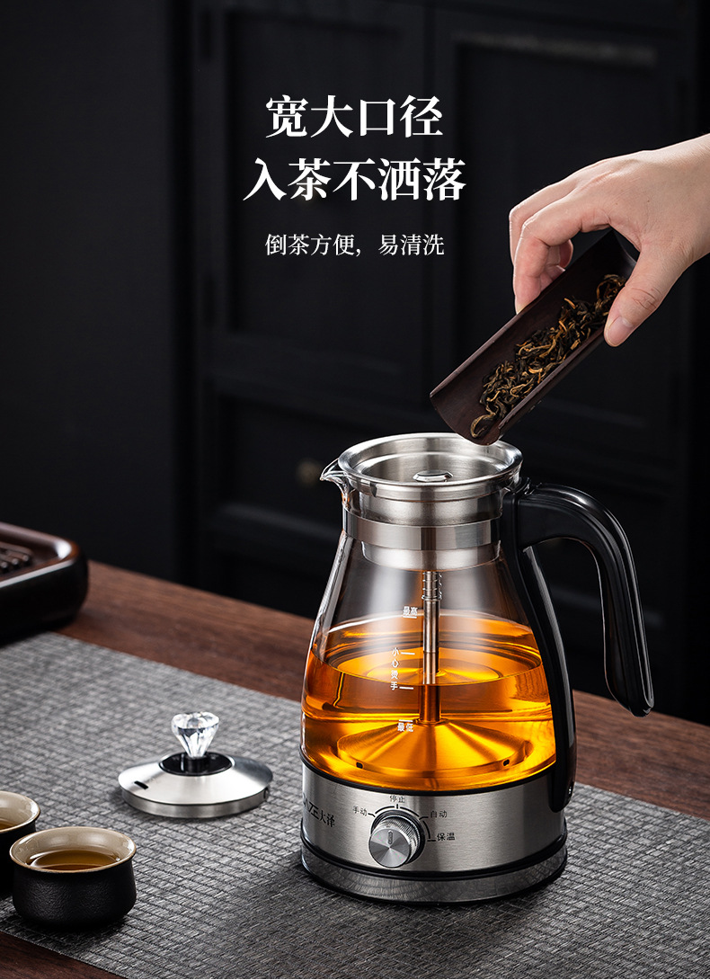 黒茶全自動蒸気煮茶器電気ポットガラス養生ポット保温電気ティーポットプーアル煮ティーポット特