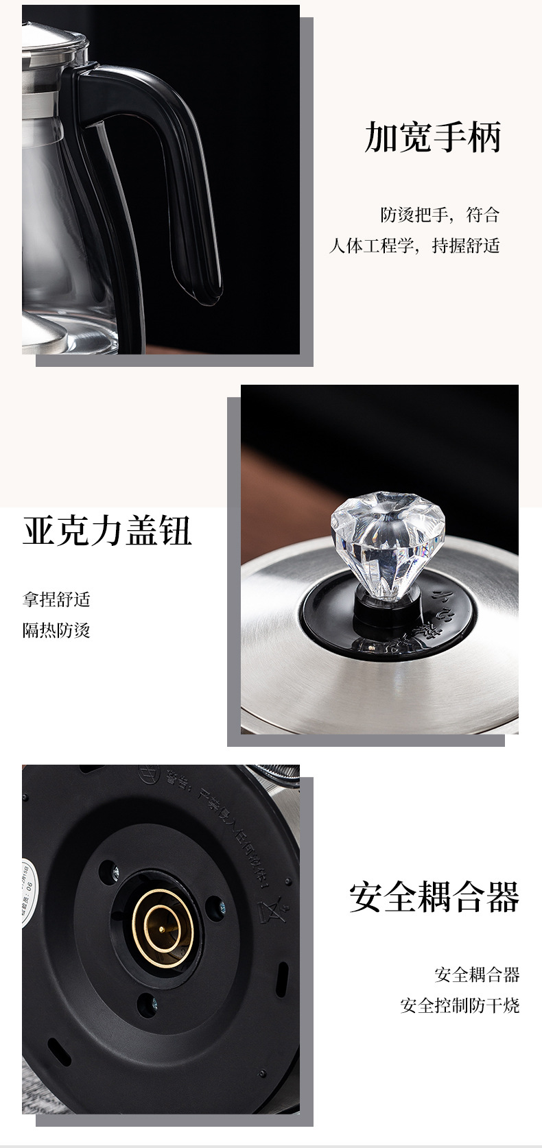 全自動蒸気煮茶器は高ホウ素シリコンガラスを厚くしてティーポットを煮て保温します。