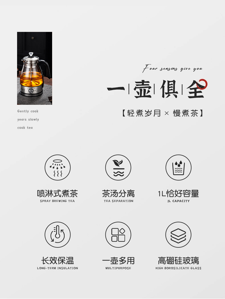全自动煮茶器黑茶喷淋式煮茶壶蒸煮两用大容量玻璃烧水养生壶