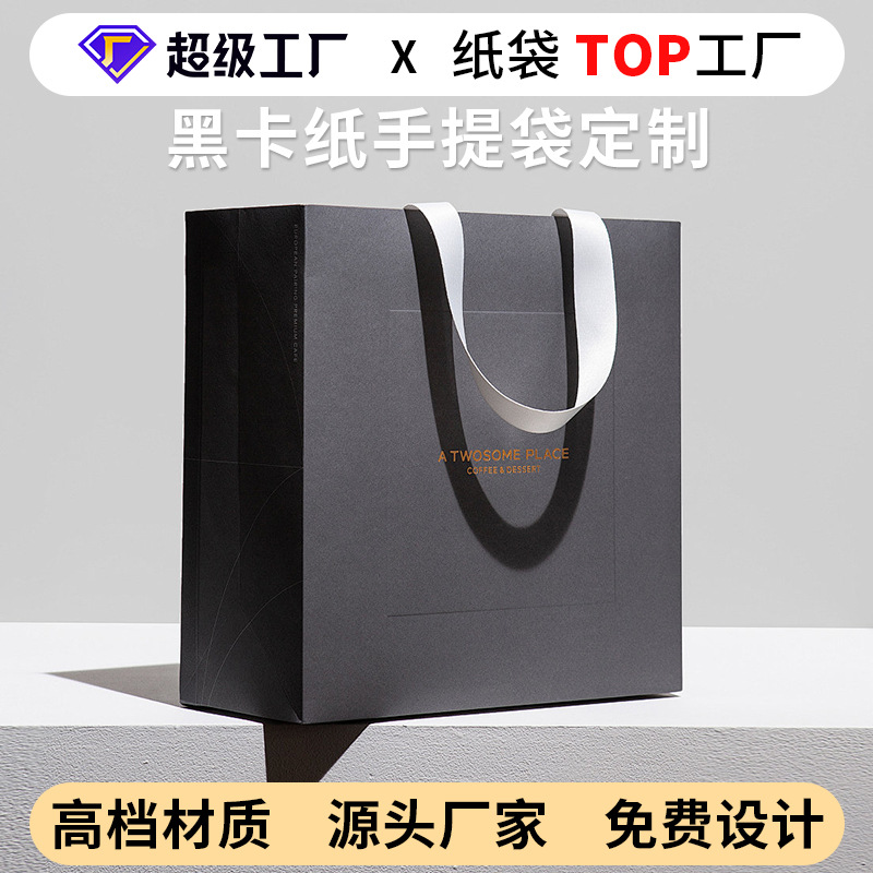 カスタマイズされたハイエンドの黒いボール紙ハンドバッグ、ハイエンドのギフトギフトバッグ、ロゴが印刷された衣料品店の特別な紙袋