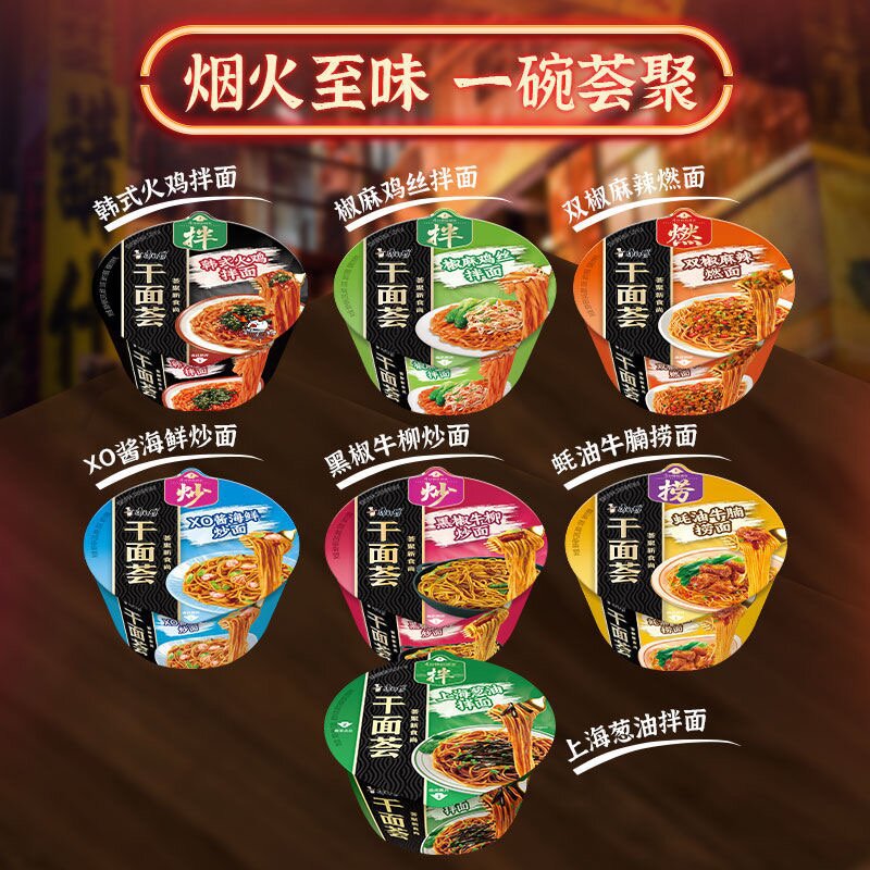 康師傅の乾麺の雑煮箱に12箱の唐辛子と麻の鶏肉を入れて麺を混ぜます。