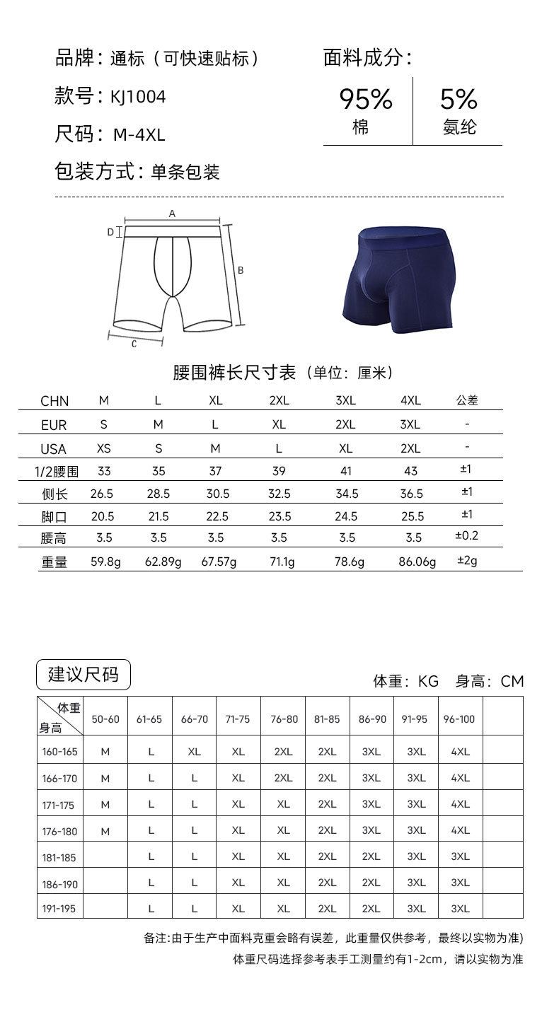 2025舒适宽松不卡档内裤男四角 透气纯棉大码平角男士夏季内裤 男士内裤 跨境 外贸