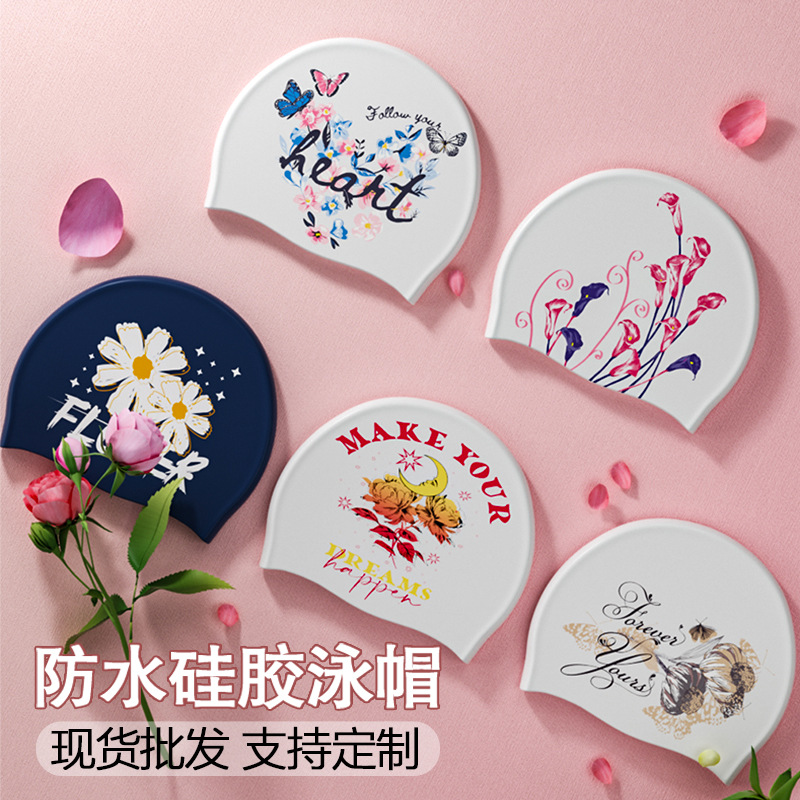 メーカー直販水泳帽女性シリコン防水首を絞めないロングヘアのファッションプリントが大きくなっています。