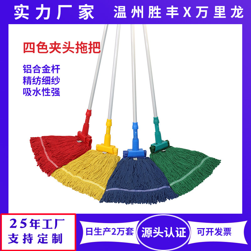 万里の龍澳式の水は厚くて吸水して商用ではなくて、モップの卸売りの綿のモップの4色の色を交換することができます。