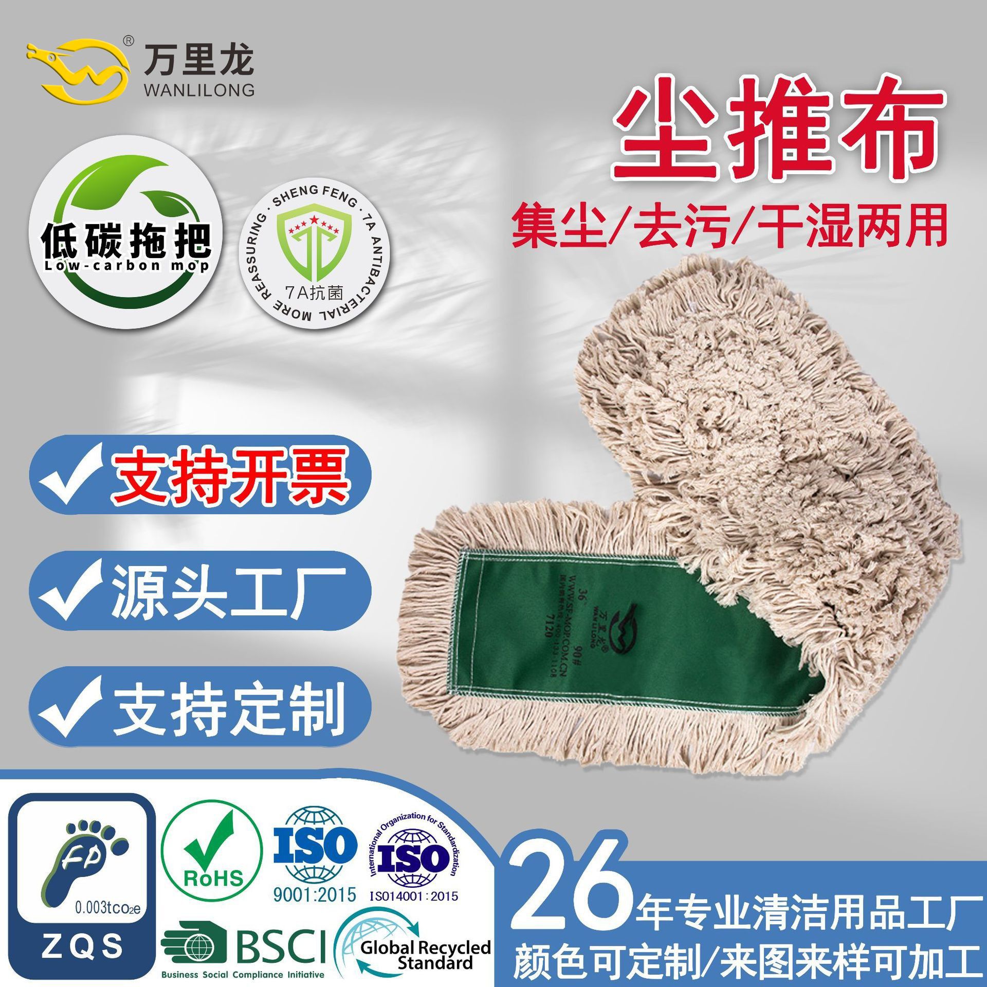万里龍7A抗菌フラットモップ、厚手の多機能ダストモップ、吸水性のある業務用ダストモップ、耐久性のあるモップ