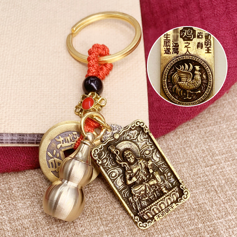 高級真鍮十二支回転キーホルダー、誕生仏、車の鍵飾り、幸運のお守り、守護神のペンダント