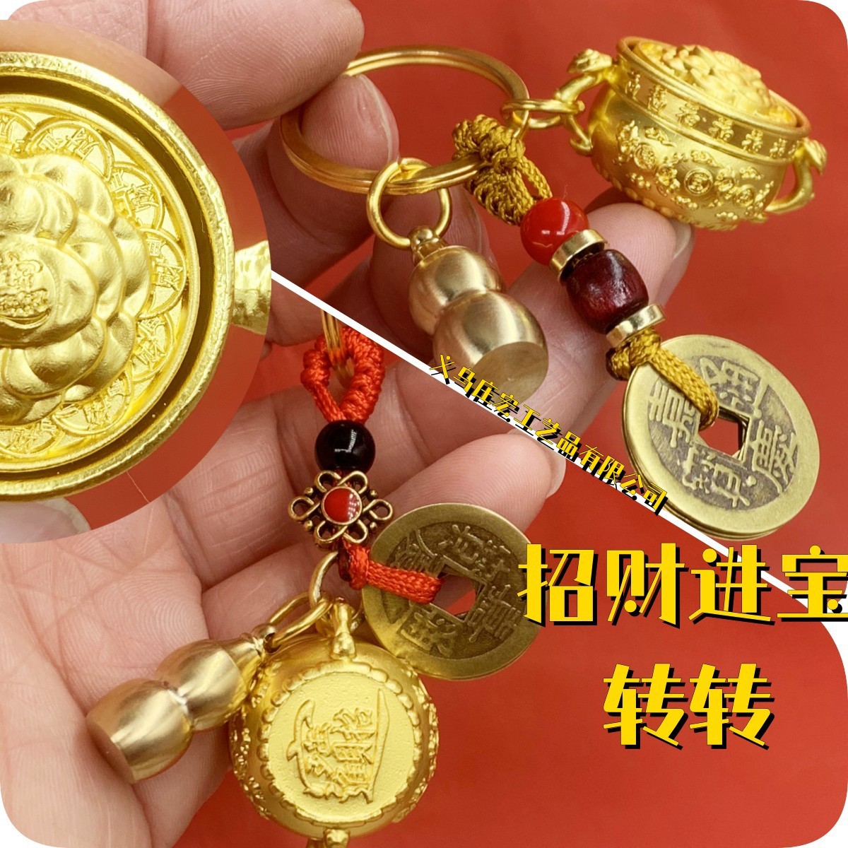 招財進宝聚宝盆を回転させてキーホルダーのペンダントを回すことができます。