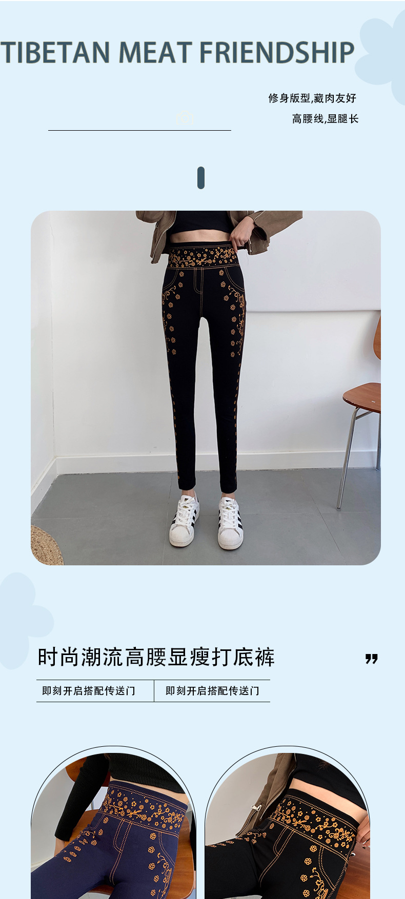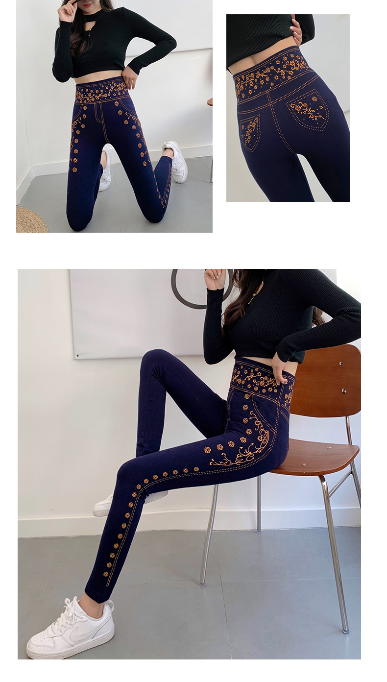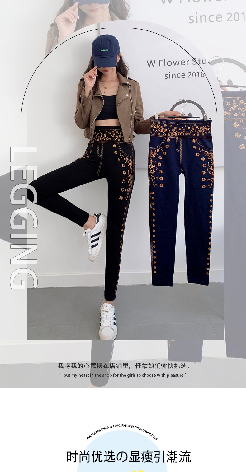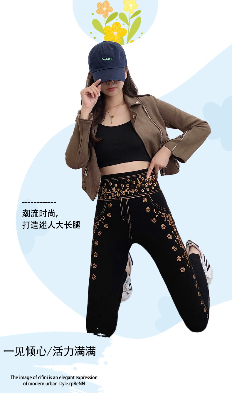 春と秋の新作イミテーションデニム9点丈タイトパンツ、高弾性、ハイウエスト、痩身、多用途モーダルレギンス、女性用痩身レギンス