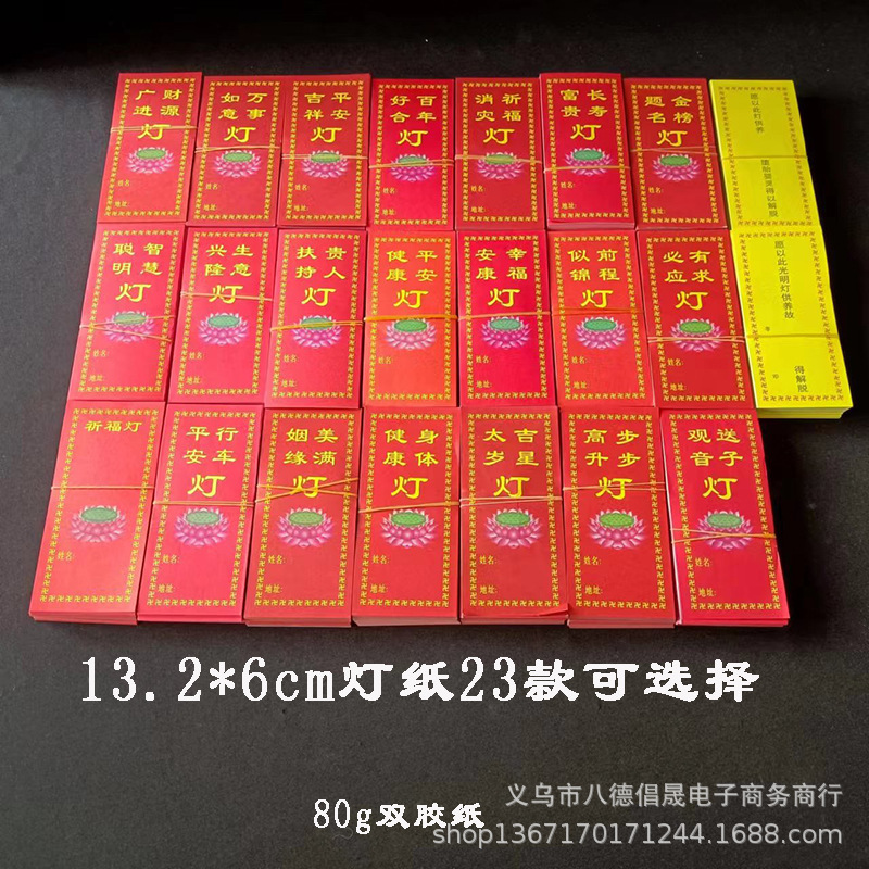 13*6センチの新しいカラーランプ紙のランプ功徳紙の祝福カードの紙法会用品