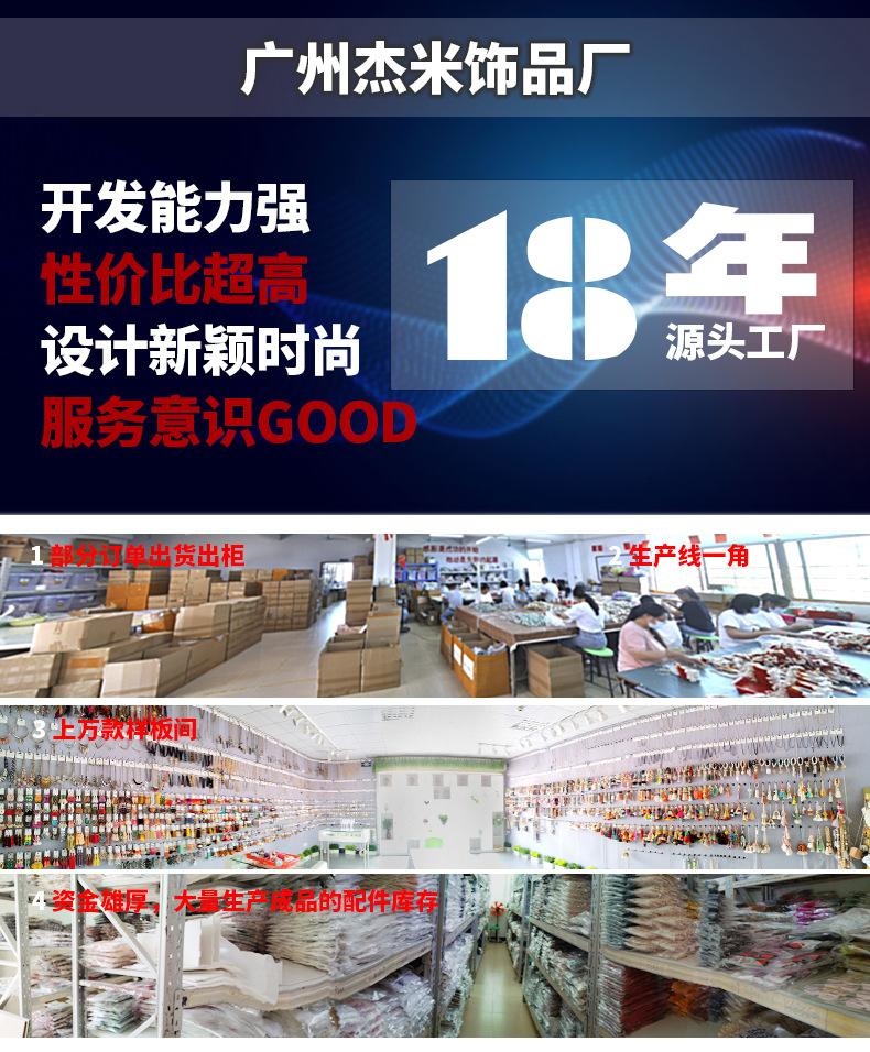 我们将本着质量保证、诚信服务的宗旨竭诚为国内外广大客户提供优质的产品和服务。我们将携手拼搏,开拓努力,为“杰米饰品”成为饰品行业的知名品牌而不懈努力!