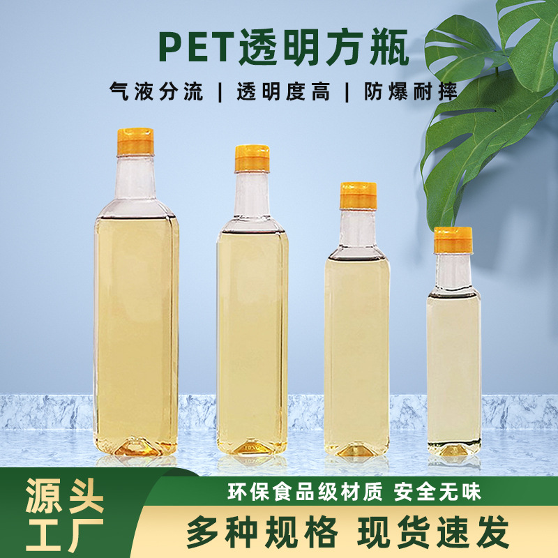 250ml~1000mlの食品グレードPETプラスチック製オイルボトル、透明で蓋付きの四角い香油ボトルを卸売で製造しています。