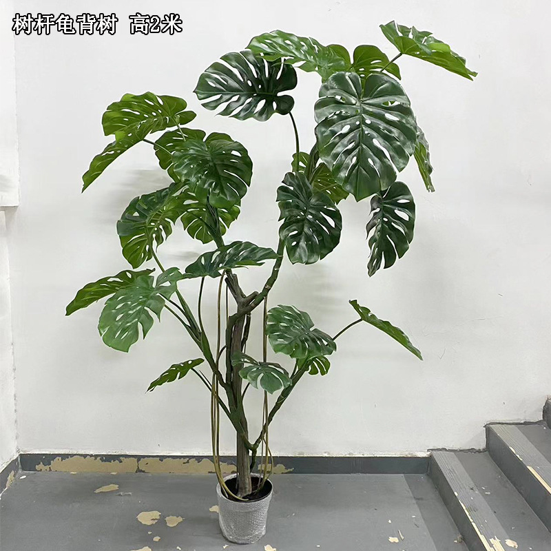 熱帯雨林風の大型の葉を持つ緑の植物、カメの背の葉の造園に最適なモデル、古い茎のカメの背の木