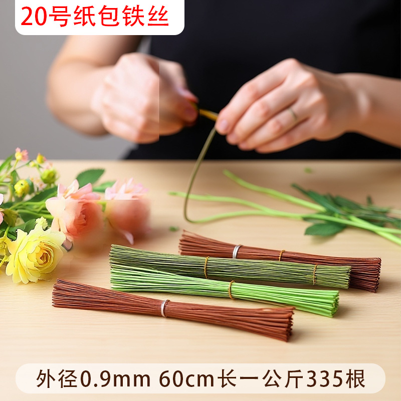 2番8番グリーンコーヒー色ワイヤー紙包花棒制作シルクネット花葉脈花シミュレーション花棒永生乾花花
