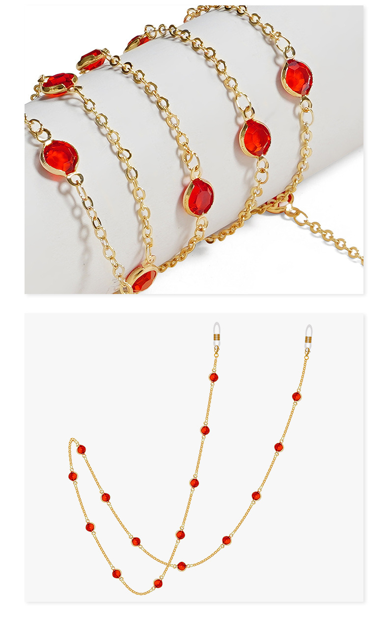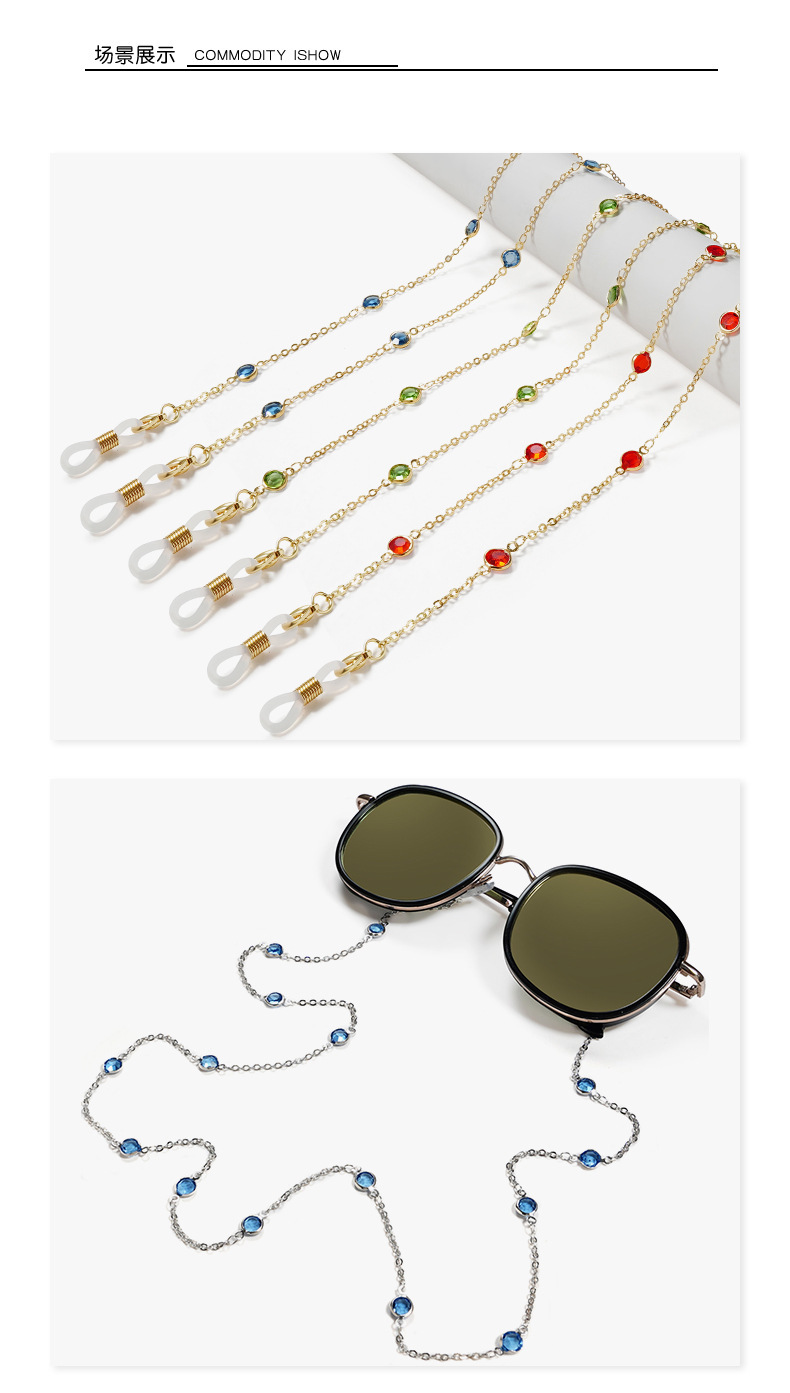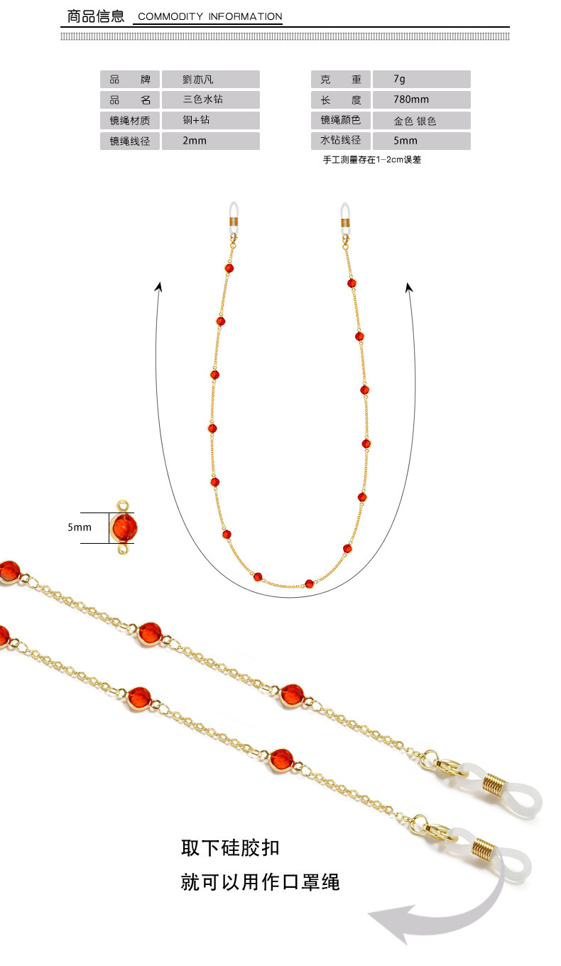 国境を越えた金メッキ保色マスク吊り鎖多要素水晶首眼鏡ロープ金属滑り止め眼鏡アクセサリー卸売り