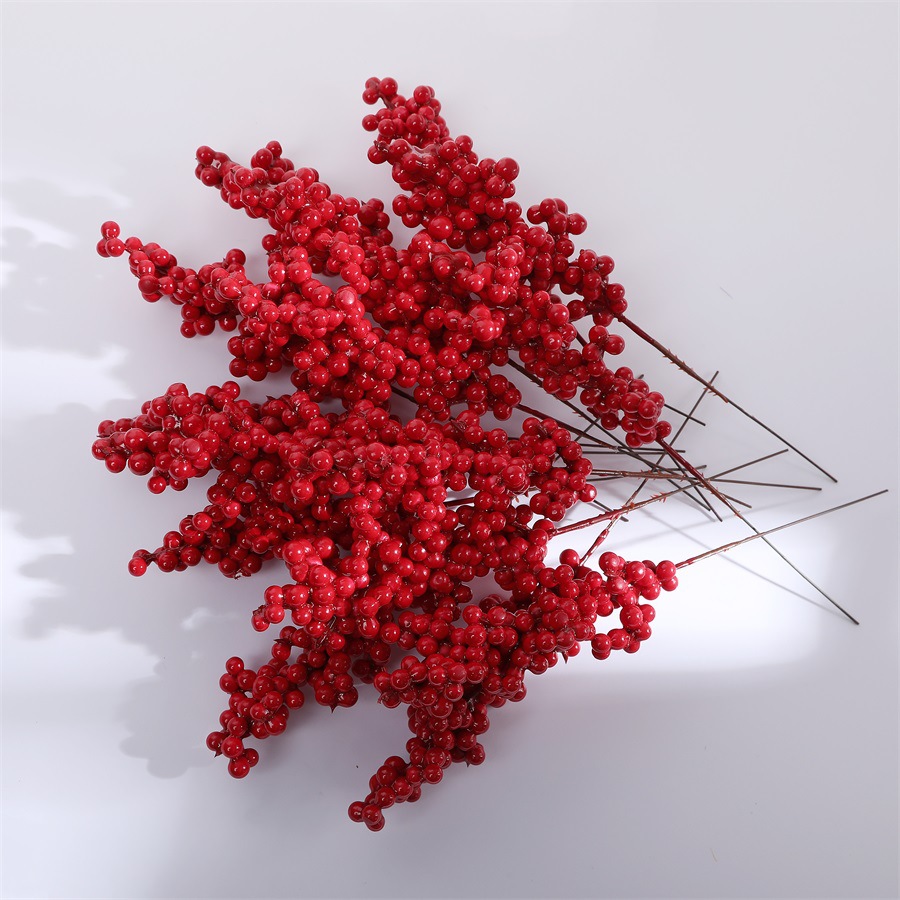 12頭のシミュレーション紅果冬青果アカシア豆紅ベリー吉祥果発財果装飾クリスマス果部品卸売り