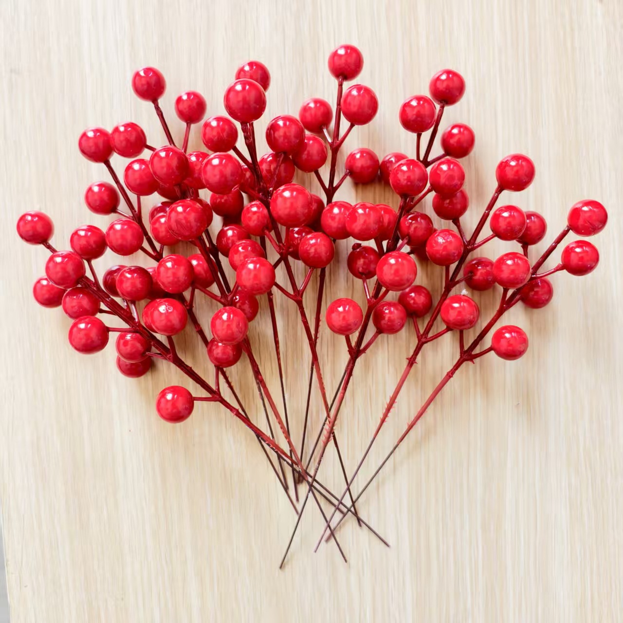 仿真红果发财果红浆果仿真冬青果圣诞节春节插枝家居装饰配件批发