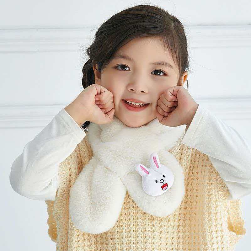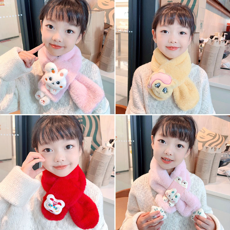 2025新款儿童围巾秋冬季毛绒可爱加厚卡通仿兔毛宝宝围巾围巾儿童