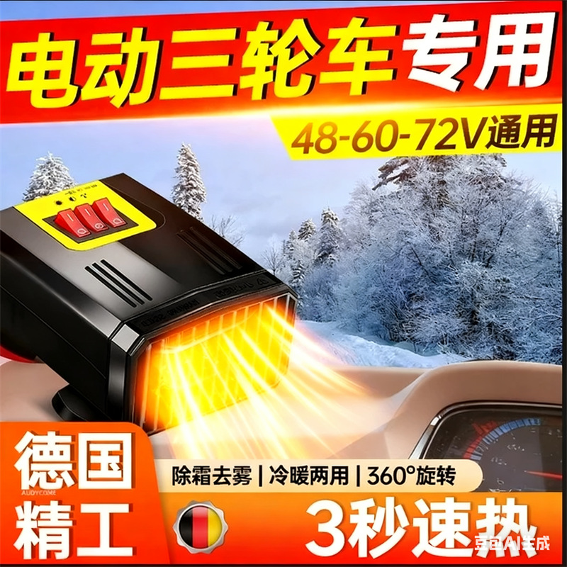 三轮车取暖电动车暖风机三四冬季车载加热器汽车除霜去雾48v60v72