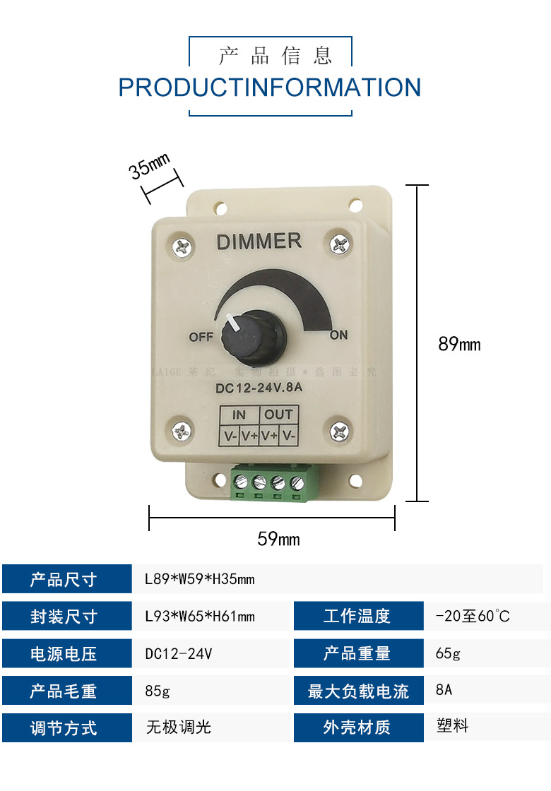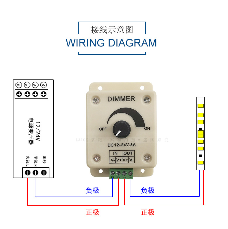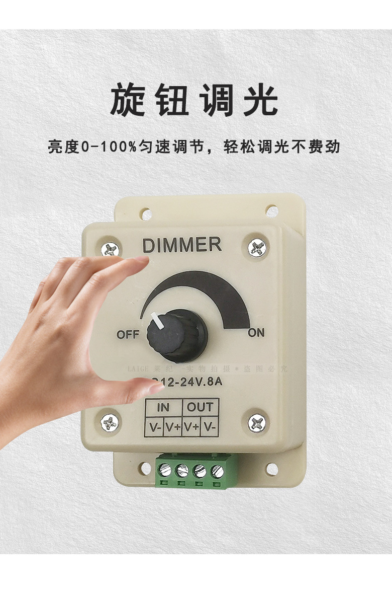 低圧12V24V8A手動ノブ単色LEDランプ調光器調光調色スイッチ付き明るさコントローラ