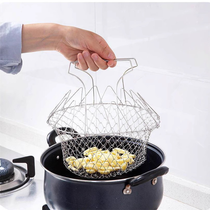 揚げ網ステンレス折り畳み揚げかご家庭用揚げフィルター多機能揚げ工具水切りかご