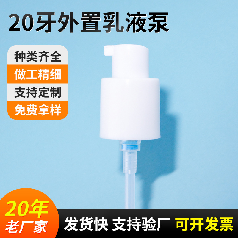 注塑外置乳液泵20牙粉底液按压泵头短嘴pp白色塑料泡沫喷化妆品