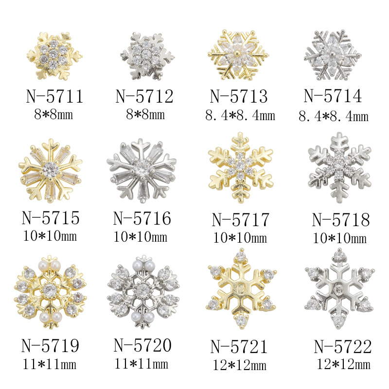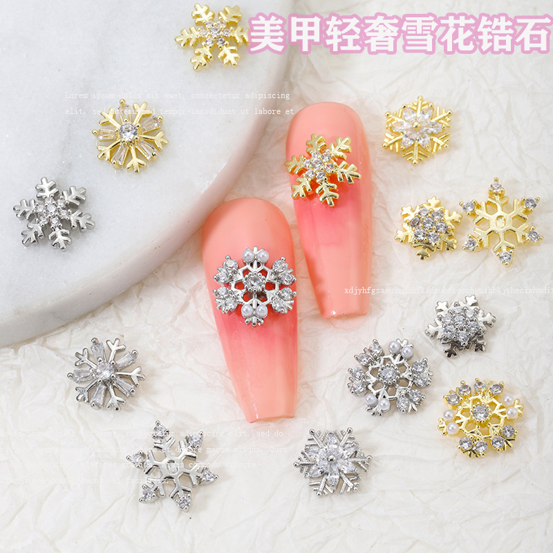 秋冬新作スノーフレークシリーズネイルアートアクセサリー、軽やかな高級感と超キラキラ輝くジルコン、クリスマススノーフレークダイヤモンドメタルネイルデコレーション