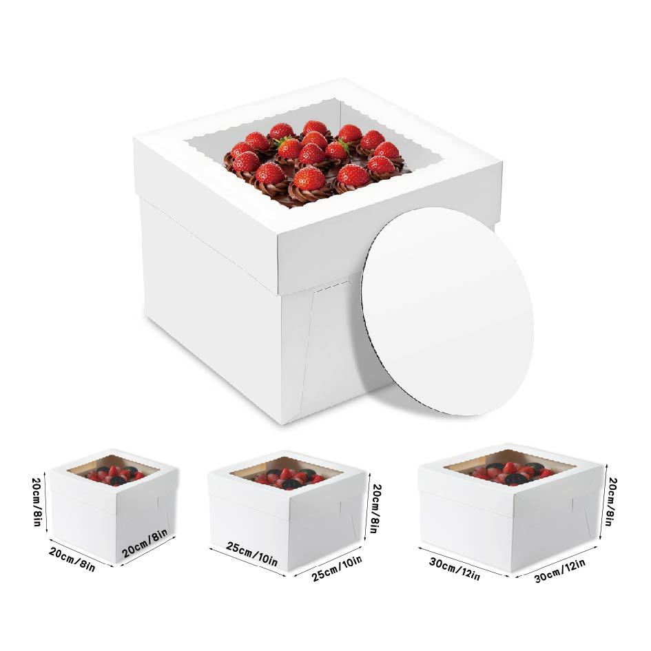 跨境现货白卡天地盖8寸10寸12寸蛋糕盒开窗透明盖蛋糕盒